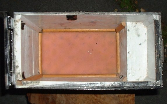 This shows the "ribs", 1/2" round trim used to attach the walls of the box. Screws come in from the outside, into the ribs, providing a surprisingly strong structure. The bottom ribs in this picture look a little wrong, because what you're seeing is actually the parts I used to tie together the extension with the original, shorter boxes. If anyone else builds a set, they'll skip that whole step and build them full height from the get-go. Hopefully. Also, that's open-cell foam in the bottom, to keep things from bouncing around.