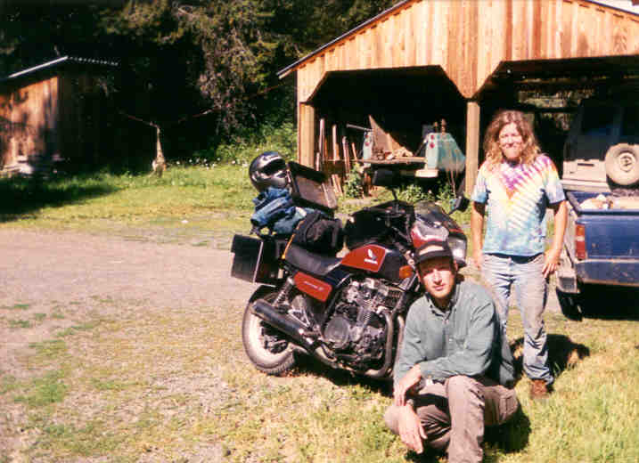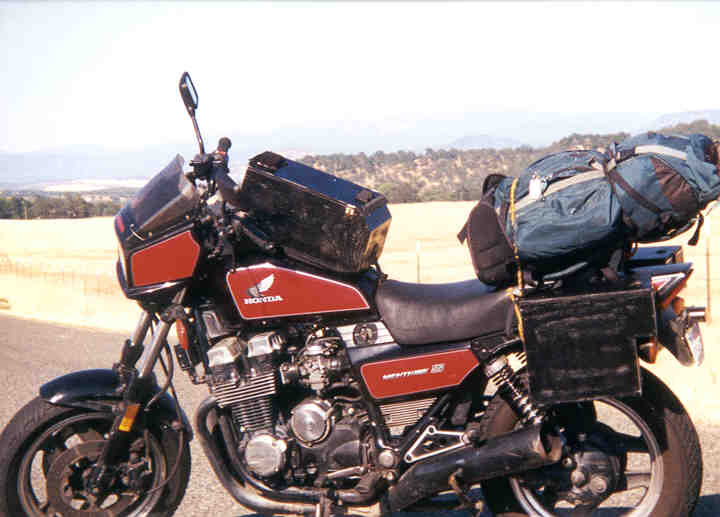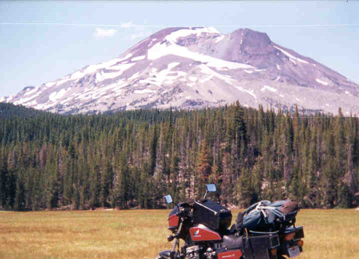 Next stop, the city of Bend. An outdoorsperson's paradise, Bend was beautiful (like Chico, CA but in a mountain/forest setting) but somewhat overwhelmed by growth. A summer festival was in full swing, and I never could find the old (still functioning?) Greyhound station. Nor can I remember it from the 80's. Anyway, I'm back on US97 and heading north, through Redmond and Madras. Somewhere I found a burrito, because while eating at the rest stop north of Madras an '85 BMW R80GS pulled up to chat for a while. Jim, a 60-something high school teacher, was halfway between his home in Anchorage and his visit to Boise or some such. I was mighty impressed with his old machine, loaded for bear and with his wife having been dropped off back in Bend for a lace convention.