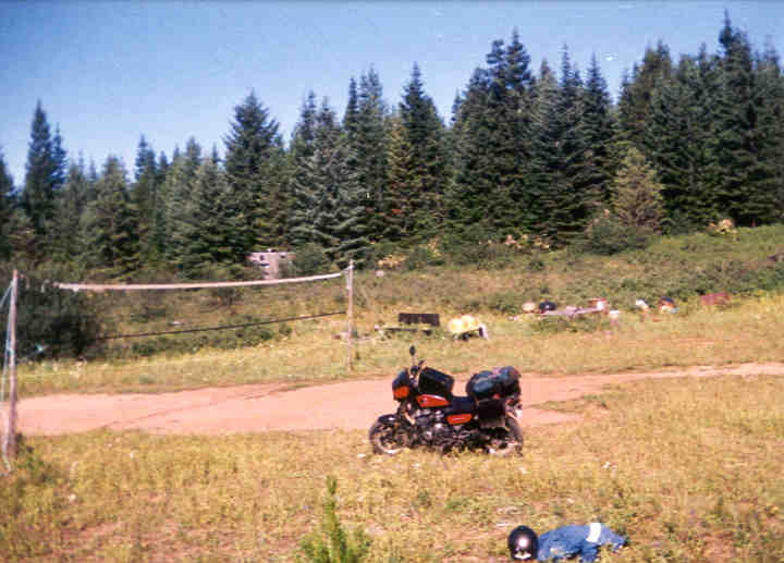 Heading east on the Tiger Highway (great name), I pulled off for the night in the Colville National Forest. The next morning I continued to the little town of Tiger (one gift shop, no gas station, thanks, EPA). Behind said gift shop there was a small, privately-maintained (I think) rest stop. Water bottles filled and visor cleaned, I noticed a sign advising me to "drive the scenic Selkirk Loop" up through British Columbia and back down into Idaho. Right, I thought, as I mounted up and headed south. But then I thought about it as I was riding. Here I am, only 30 miles from Canada, and I'm heading south? Why not go for it? So I did.