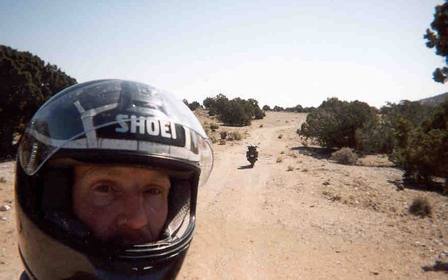 I pushed on north to the cozy and real county seat of Monticello. At the supermarket, I happily resupplied (including a new camera!), and remember well that much of the staff was Mexican or American Indian, including the cologned and slightly rude camo-wearing restockers. There was also an elderly Indian (as in, from the sub-continent) couple in line in front of me, which seemed a little surprising. Trivial details aside, I stopped on the edge of town at the local Honda dealer, looking for a replacement gas tank filler cap seal to stop the bad smell I'd been experiencing. Though it turns out this part isn't sold by Honda, two Goldwing-riding patrons (possibly from Salt Lake City) suggested an alternate solution, that I "drive a new bike under that old gas cap". While slightly rude, it was quite funny, and allowed me an opportunity to mention that this bike had a certain sentimental value, developed over 50,000 miles of riding. I'll bet that got their attention! At any rate, events would prove that they were probably right, read on for the whole story.