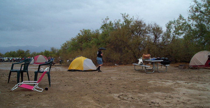 Hey! That's not Palo Alto... but it does look suspiciously like Dale Blanchard holding an umbrella at Death Valley as he navigates back to his tent through the river of mud.